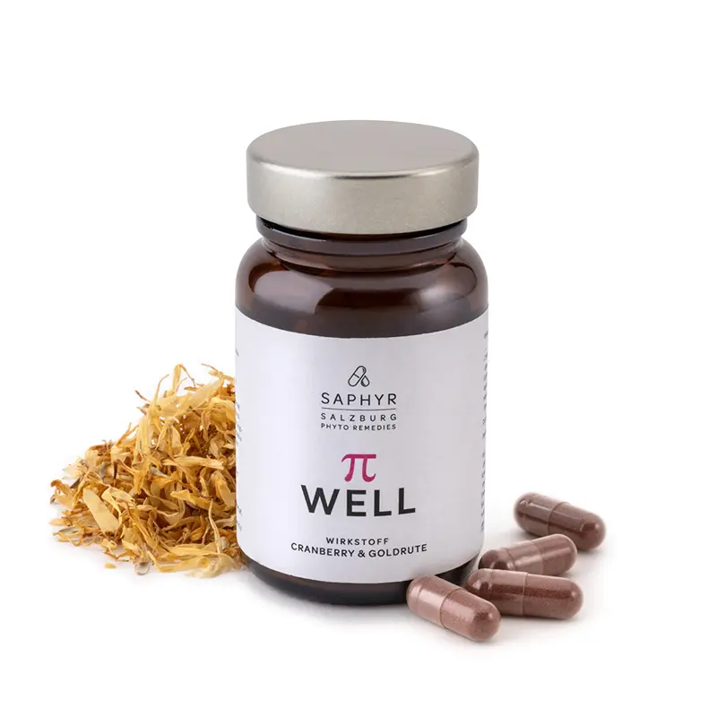 Natürliche Unterstützung bei Harnwegsinfektionen mit wertvollen Pflanzenextrakten aus Cranberry, Goldrute, Kapuzinerkresse und Wasabi.